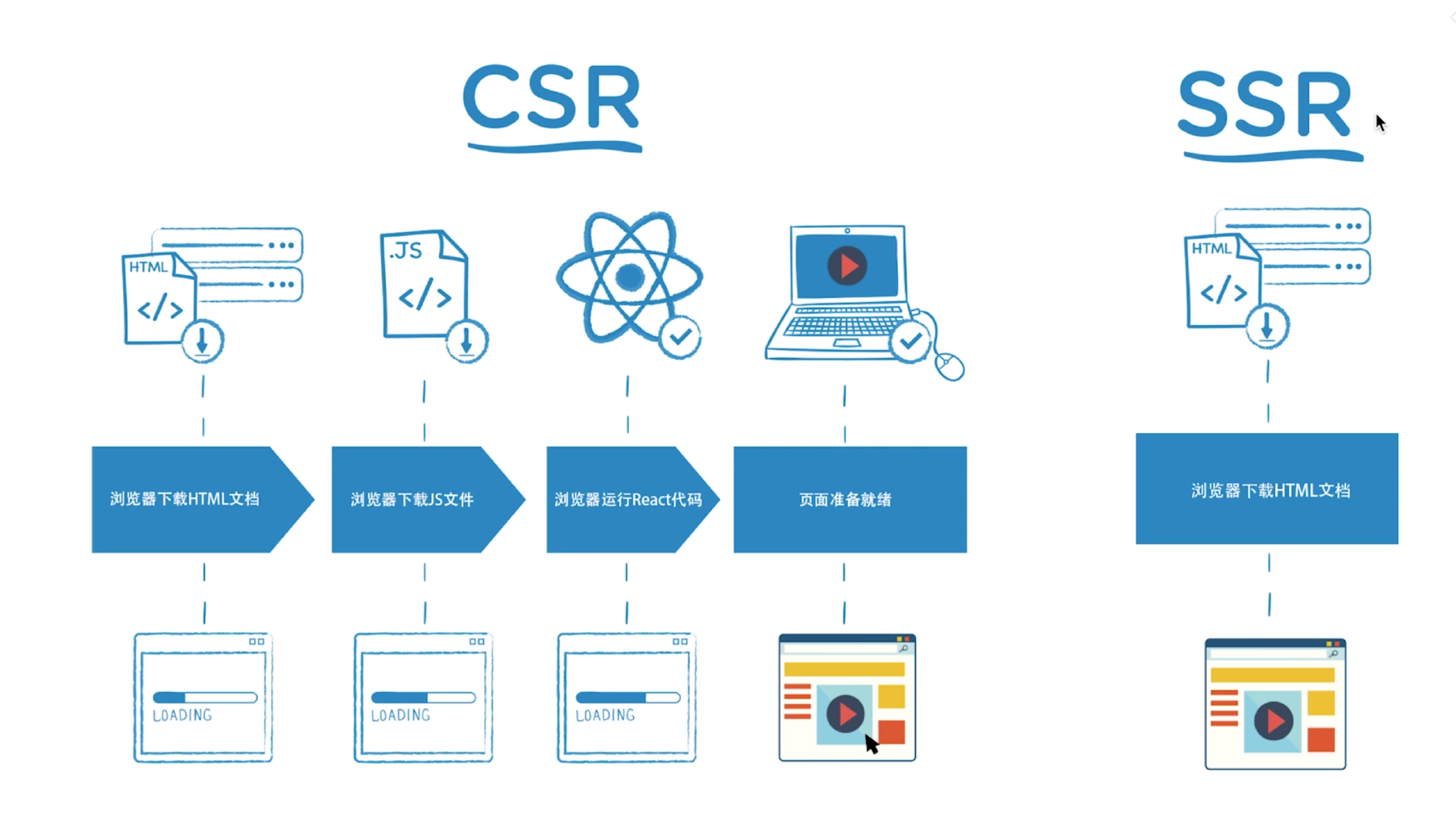 # 一 React-SSR 和 React-CSR(浏览器端渲染)区别:
