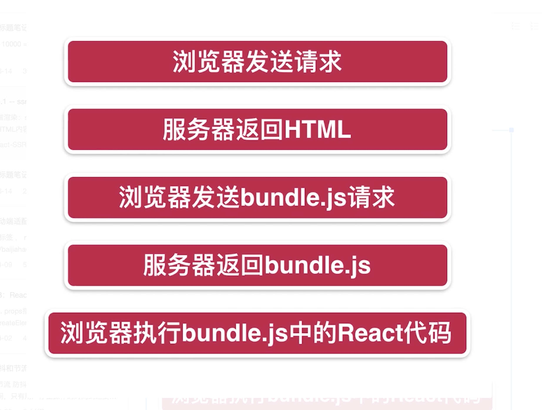 - 浏览器端渲染:浏览器端请求bundle.js,然后渲染。